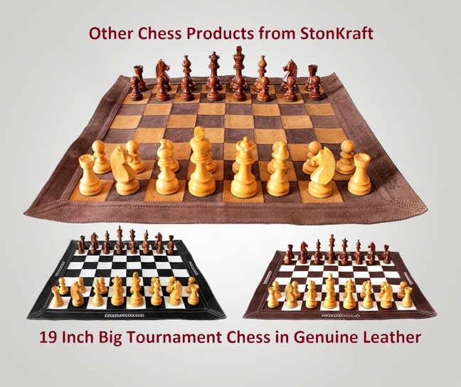 Wooden pieces with leather chess board quantity